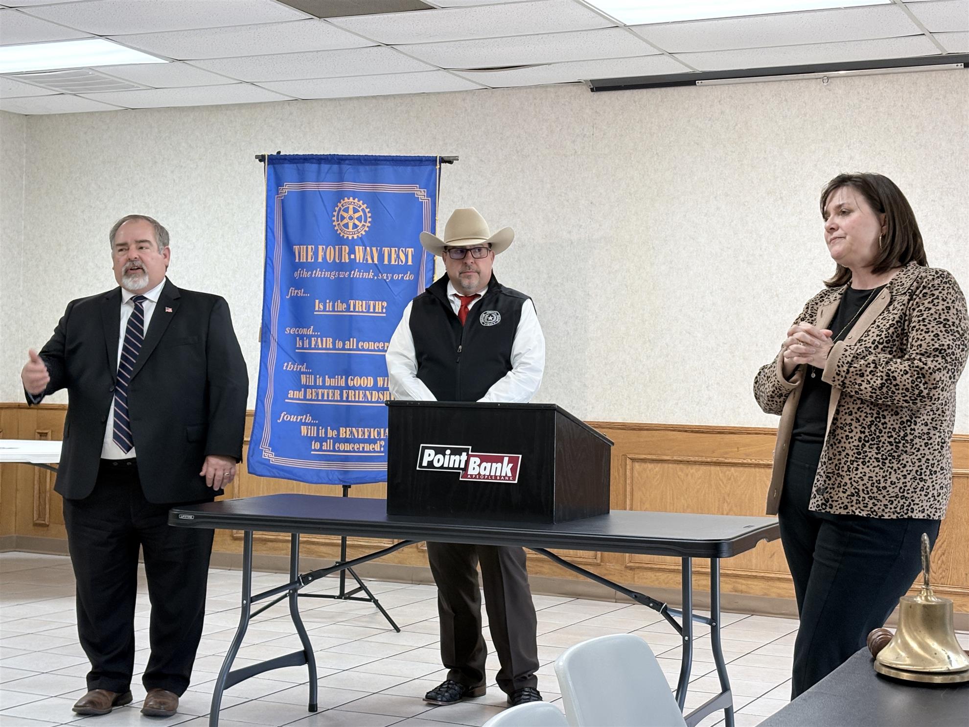 Pictured are (left to right): Rotarians MaryLou Conde, Jerry Alford, Ronda Robinson, Don Richmond, Shawn Dollar, Cindy Kennedy, LovePacs representative Gloria Huerta, Club President Penni Moening, Whitney Delcourt, Brian Murrell, Patti Dellenbaugh, Gina Webber, Monica David, LovePacs representative Kim Groff, Michael Norvet, Billie Jean Tallent, Dick Bullwinkle and Mike Thompson.