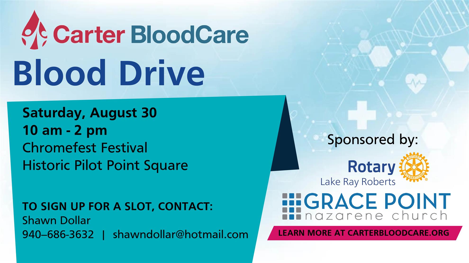 The Carter Blood Care Bus will be parked at Chromefest on the Square from 9 am - 1 pm on Saturday, August 30.